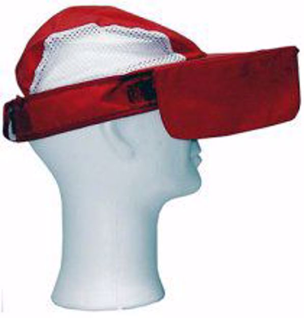 Shooting cap with perspiration absorbing sweatband. Two adjustable side flaps and individually adjustable eye shield all with velcro attachment. Side parts made of net material. Material: 60% cotton, 40% polyester.
